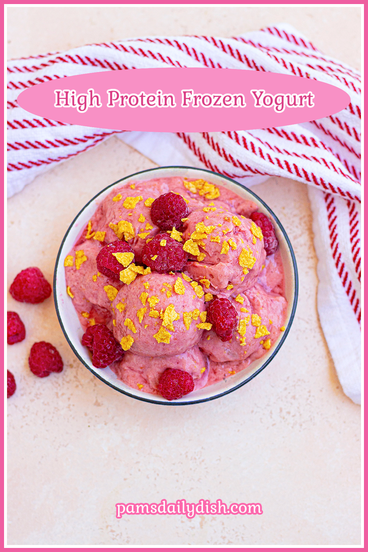 Thanks for stopping by. I hope you enjoy todays recipe for the most delicious high protein frozen yogurt. It’s so good!