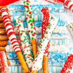 These Holiday Chocolate Pretzel Rods are perfect for the holiday season. No one can resist the sweet and salty deliciousness! Make lots of these and have fun giving them out and enjoy some for you and your family!